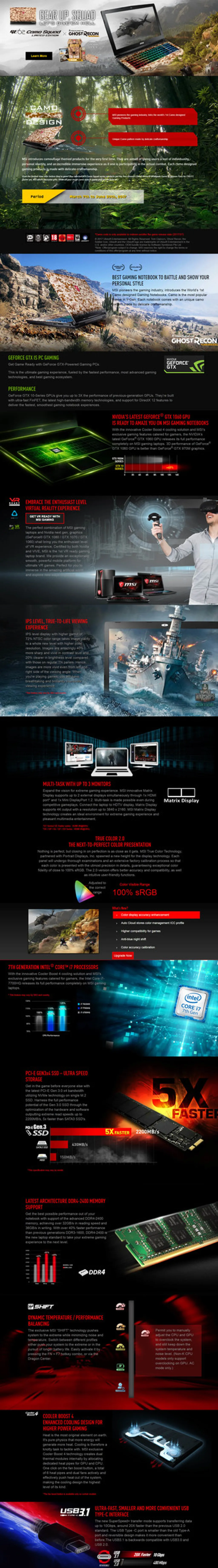 MSI GE62VR-7RF-637 CAMO SQUAD Limited Edition 15.6" FHD Gaming Laptop (I7-7700HQ, 16GB, 1TB+256GB, GTX1060 3GB, W10)