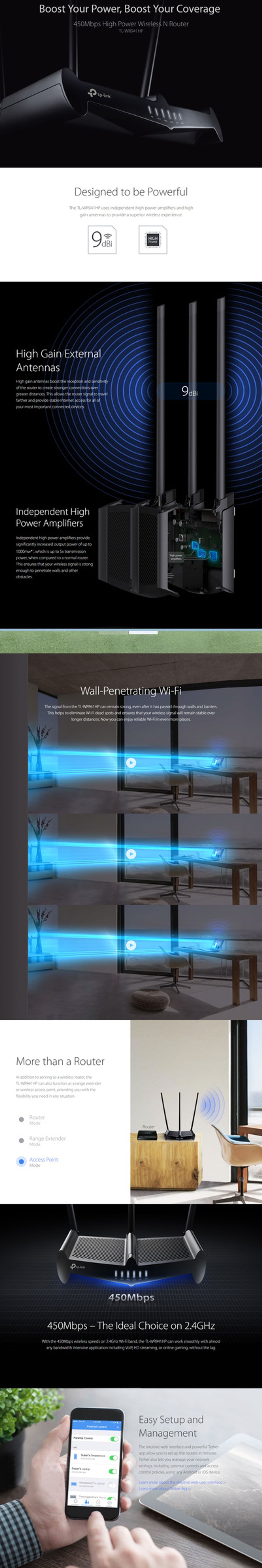- 1 x TP LINK 450Mbps High Power Wireless N Router TL-WR941HP
