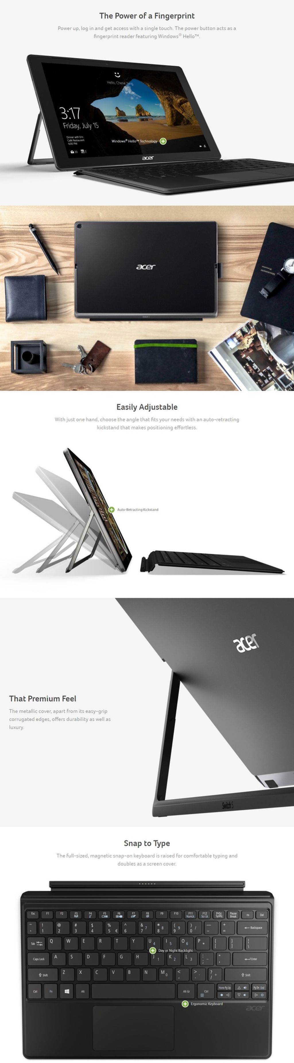 Acer Switch 5 SW512-52P-75HB 12" IPS QHD Touch Laptop ( I7-7500U, 8GB, 256GB, Intel, W10 Pro)