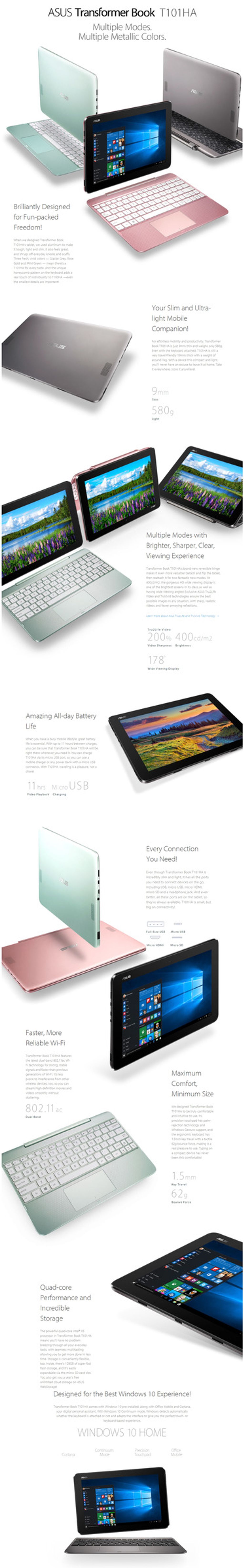 - 1 x Asus Transformer Book T101H-AGR007T 10.1" 2-in-1 Laptop Pink Gold