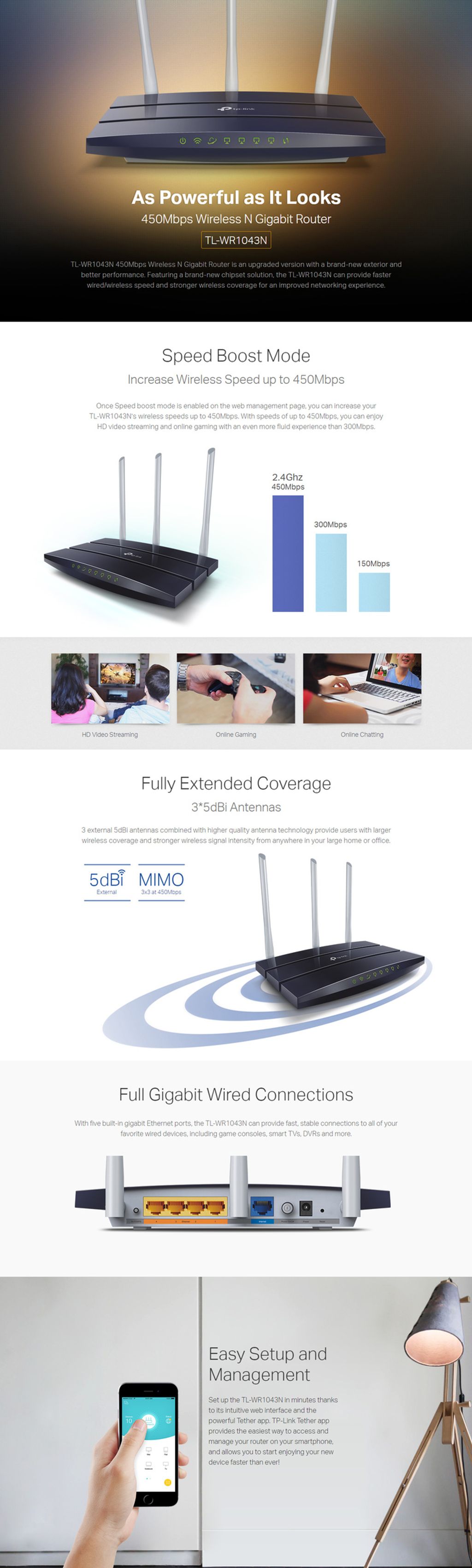 TP LINK N450 450Mbps Wireless N Gigabit Router TL-WR1043N